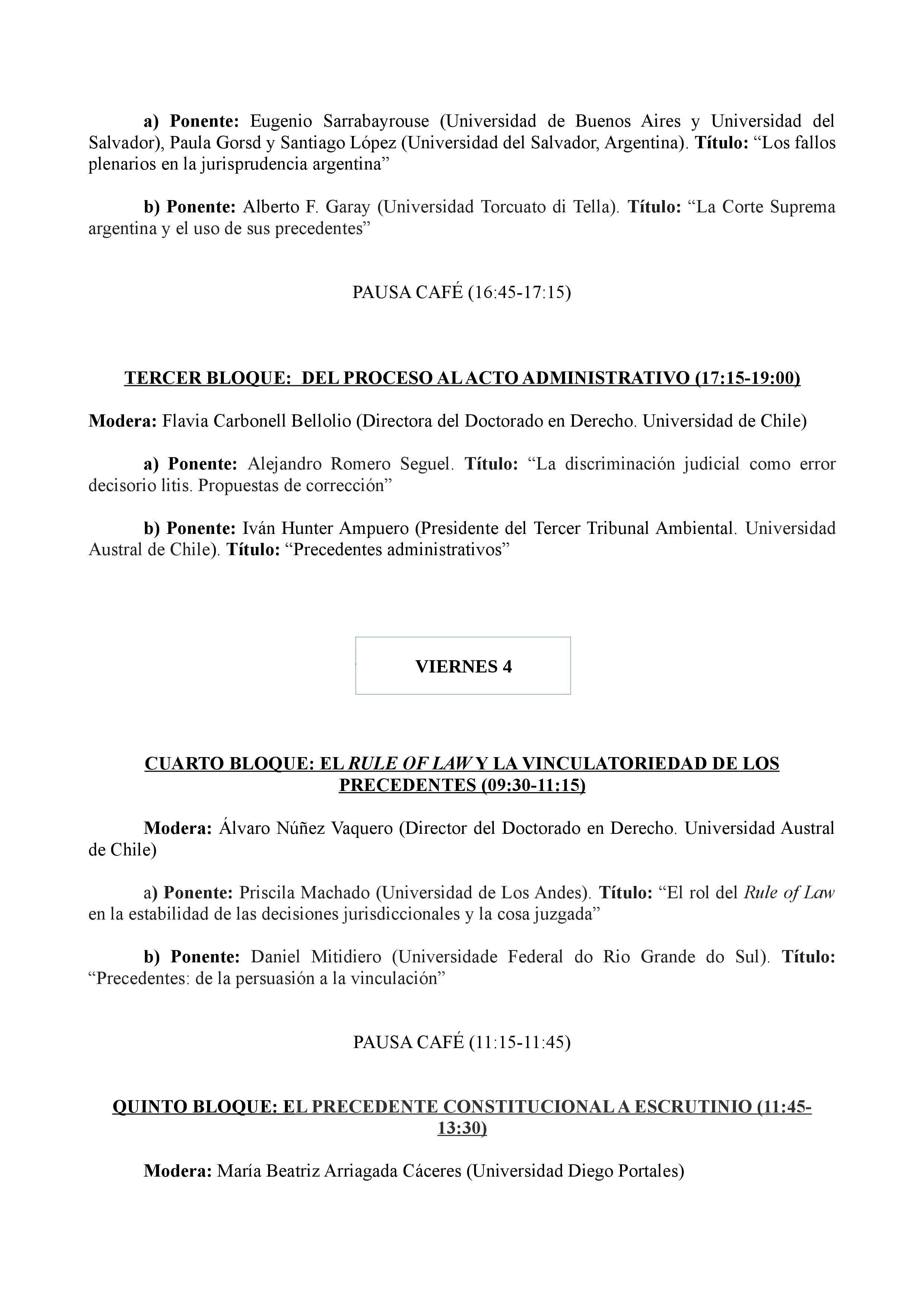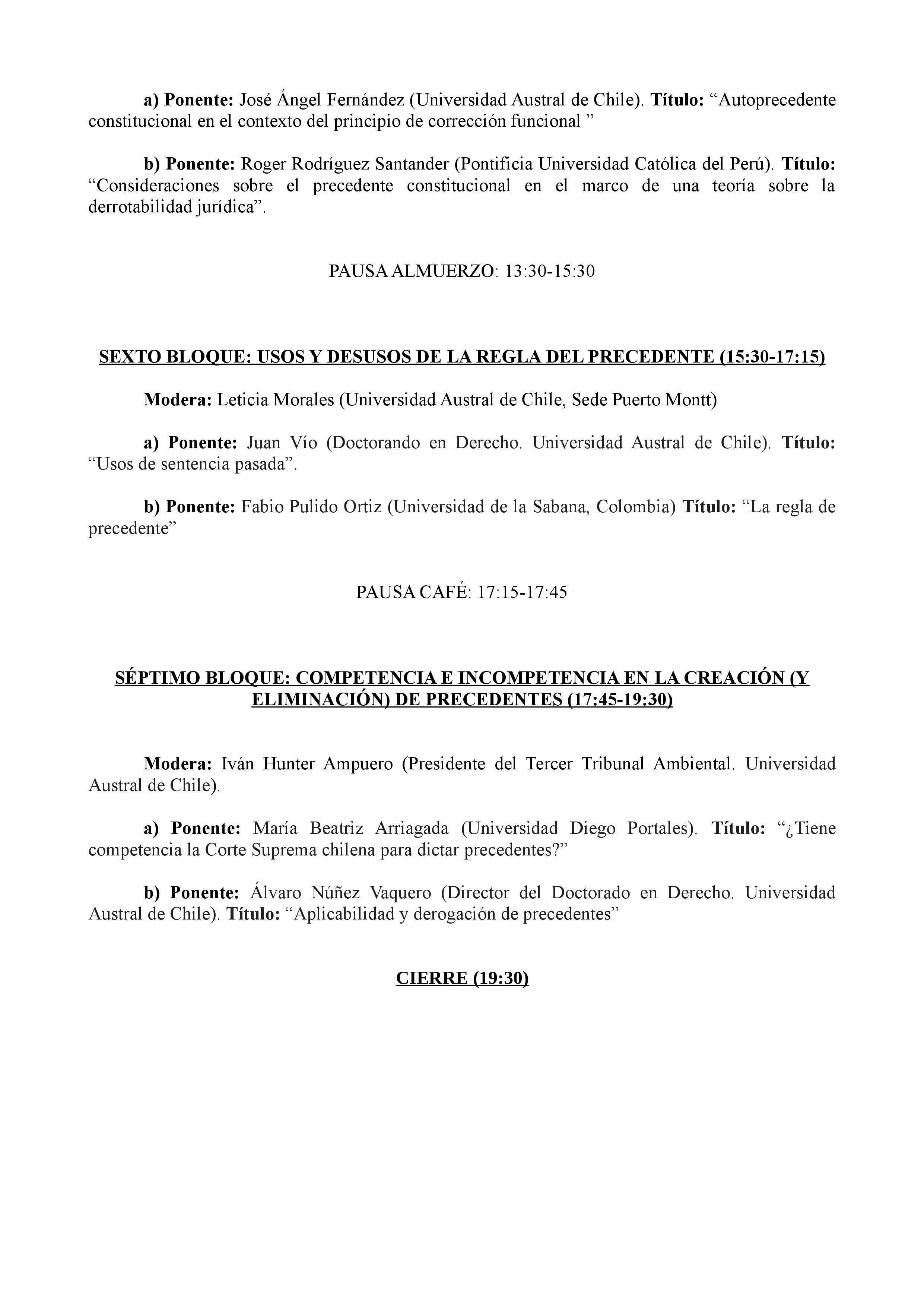 :: Events :: Los días jueves 3 y viernes 4 de octubre de 2019 se celebrará en la Universidad Austral de Chile (Sede de Puerto Montt) el Congreso Teoría y práctica del precedente. Seguidamente puede consultarse el programa del evento.