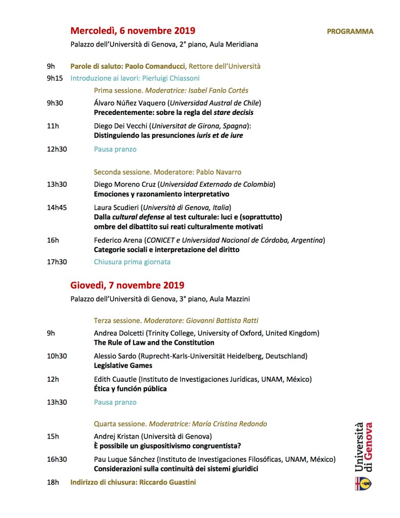 :: Events :: Nei giorni 6 e 7 novembre 2019 si terrà il Primo incontro dei dottori genovesi in Filosofia del diritto col titolo Realismo genovese: nuovi confini e la discussione dei lavori di Federico Arena (CONICET, Argentina), Edith Cuautle (UNAM, Messico), Diego Dei Vecchi (Girona, Spagna), Andrea Dolcetti (Oxford, Regno Unito), Andrej Kristan (Genova, Italia), Pau Luque (UNAM, Messico), Diego Moreno (Externado, Colombia), Álvaro Núñez (Austral, Chile), Alessio Sardo (Heidelberg, Germania) e Laura Scudieri (Genova, Italia). Di seguito è consultabile il programma completo: