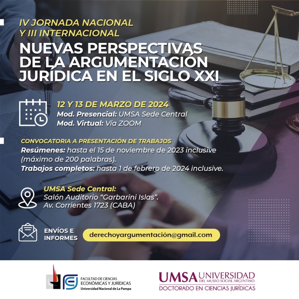 :: Events & Call for Papers :: El 13 y 14 de marzo de 2024 se llevará a cabo la IV Jornada nacional y III Jornada Internacional “Nuevas Perspectivas de la Argumentación Jurídica en el siglo XXI“.