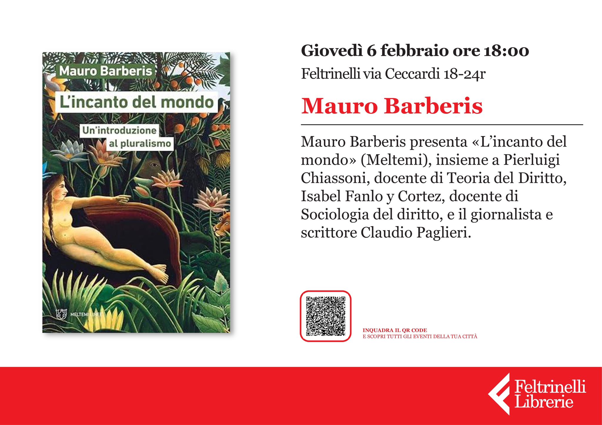 Il giorno 6 febbraio, Mauro Barberis presenta «L’incanto del mondo» (Meltemi), insieme a Pierluigi Chiassoni, docente di Teoria del Diritto, Isabel Fanlo Cortés, docente di Sociologia del diritto, e il giornalista e scrittore Claudio Paglieri.