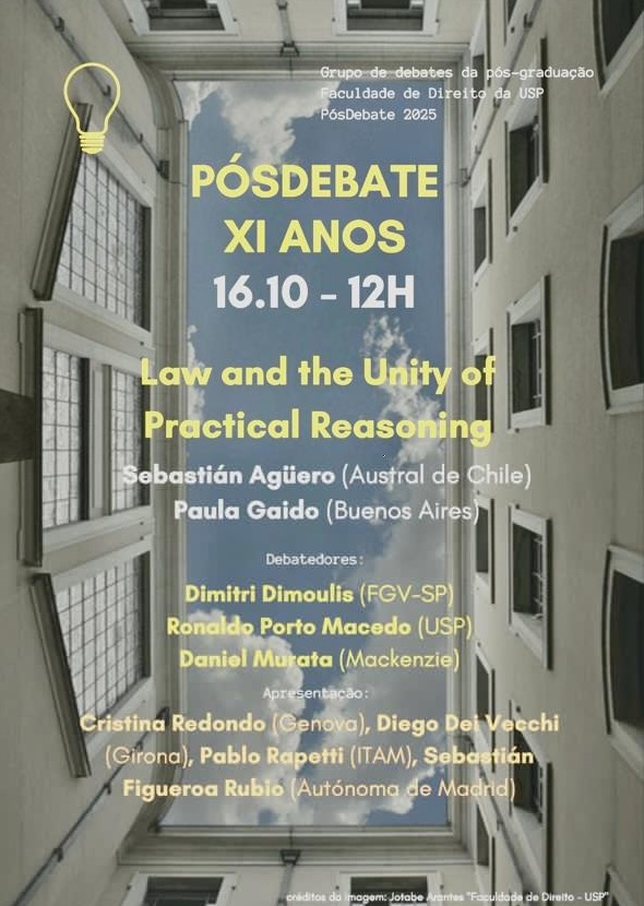 Il giorno 16 ottobre 2025, alle ore 12, presso Facoltà di Giurisprudenza dell’Università di San Paolo avrà luogo il PósDebate XI Anni, con il tema: “Law and the Unity of Practical Reasoning.”